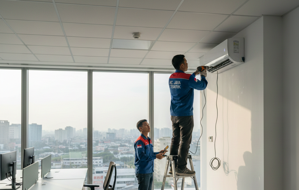 AC bukan sekadar pendingin ruangan, tapi kunci biar tim tetap fokus dan alat-alat kantor tidak cepat rusak karena panas. Kami bantu Anda urus semuanya lewat paket lengkap: mulai dari penyediaan unit berkualitas dan instalasi yang rapi, sampai perawatan rutin dan perbaikan jika ada kendala. Fokus kami adalah memastikan udara di tempat kerja Anda tetap sejuk dan bersih tanpa Anda harus pusing memikirkan teknisnya, sehingga operasional bisa jalan terus setiap harinya.